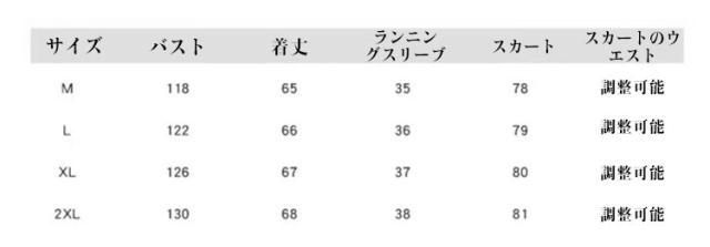 | サイズについての説明 | 【セット内容】トップス+スカート サイズ表は画像をご参照ください |