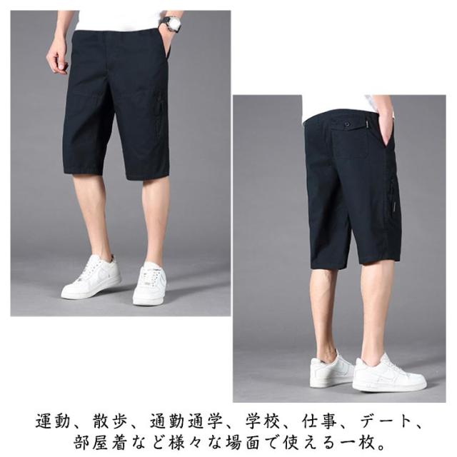 多ポケット 作業着 カーゴパンツ 普段着 クロップドパンツ ゆったり カーゴパンツ 無地 ひざ下 膝下 ワークパンツ 七分丈 カジュアル 男性用 夏服 父の日 夏 ハーフパンツ 7分丈 アウトドア 通勤 30代 40代 50代 60代