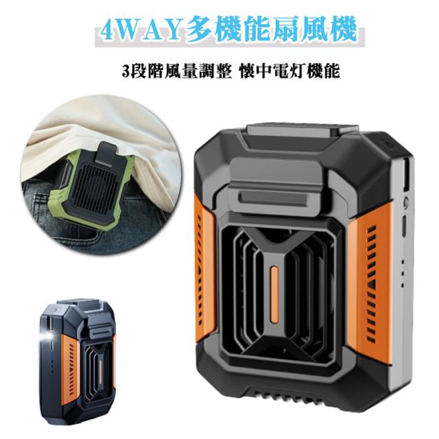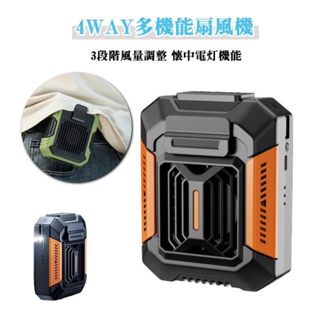 USB充電式 LEDライト 強力 LED懐中電灯 3段階風量 腰掛けファン 多機能 1台4役 携帯扇風機 涼しい ハンズフリーファン 腰掛け扇風機 落下防止 1台4役 コンパクト ミニ扇風機 小型 4way アウトドア 作業用 暑さ対策 熱中症対策 作業用