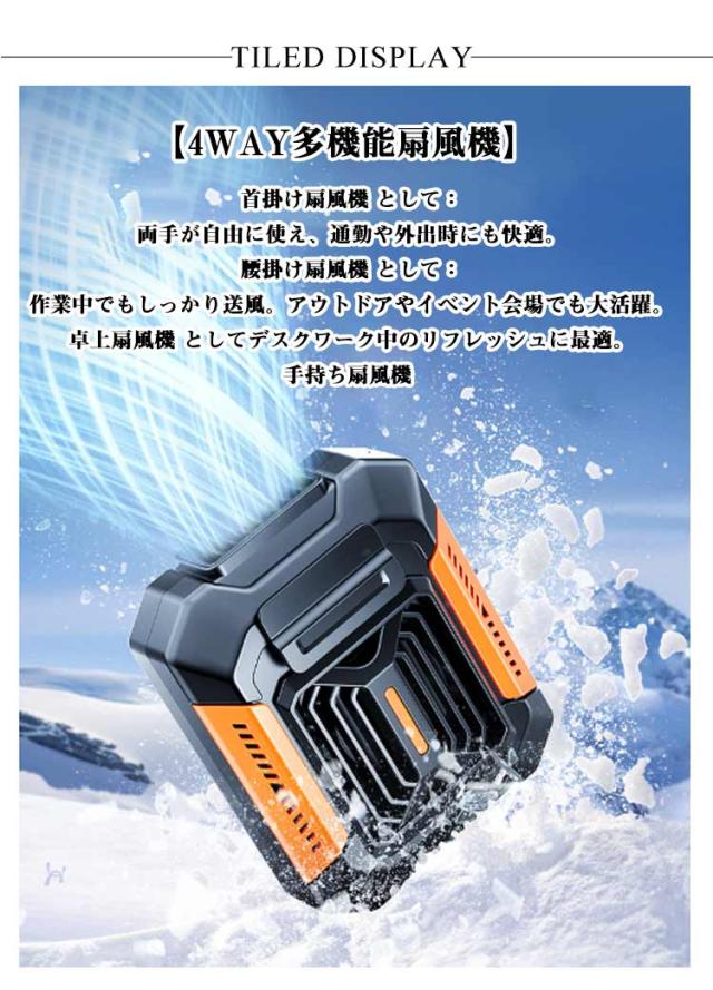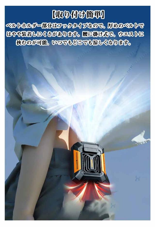 | 【4WAY多機能扇風機】首掛け扇風機 として:両手が自由に使え、通勤や外出時にも快適。腰掛け扇風機 として:作業中でもしっかり送風。アウトドアやイベント会場でも大活躍。卓上扇風機 としてデスクワーク中のリフレッシュに最適。手持ち扇風機 【3段階風量調整】自然に近い弱風から強風まで3段階の風量調節が可能で、気温に合わせて自由に調節できます。 【懐中電灯機能】LED照明用ランプが付いてあり暗い場所での作業、緊急時などの照明になります。外出先、キャンペン場でスマホを充電可能で、一台で懐中電灯、、扇風機の機能があり、もっと便利になります。 【取り付け簡単】ベルトホルダー部分はフックタイプなので、厚めのベルトではやや装着しにくさがあります。腰に掛け式で、ウエストに挟むのが可能、いつでもどこでも涼しくなります。 【USB充電】大容量電池を内蔵し、USB充電方式を採用しています。パソコン、、アダプターなどで簡単に充電ができます。 【アウトドア作業に最適】工事現場、厨房、農作業、配達作業、工場内、倉庫、スポーツ観戦、お祭り、アウトドア活動等々・・様々なシーンで熱中症対策品として大活躍です。 | |