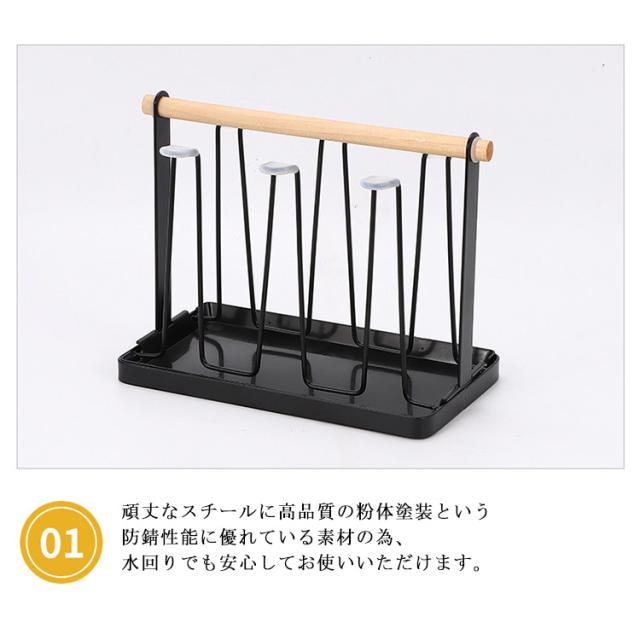 | グラスやコップなどの水切りに!洗ったコップやグラス、ペットボトルなどを立てて水切りできるコップスタンド 最大6本収納可能。 水受け付き!グラスから滴り落ちた水を受ける水切りトレー付き。 頑丈なスチールに高品質の粉体塗装という防錆性能に優れている素材の為、水回りでも安心してお使いいただけます。 | |