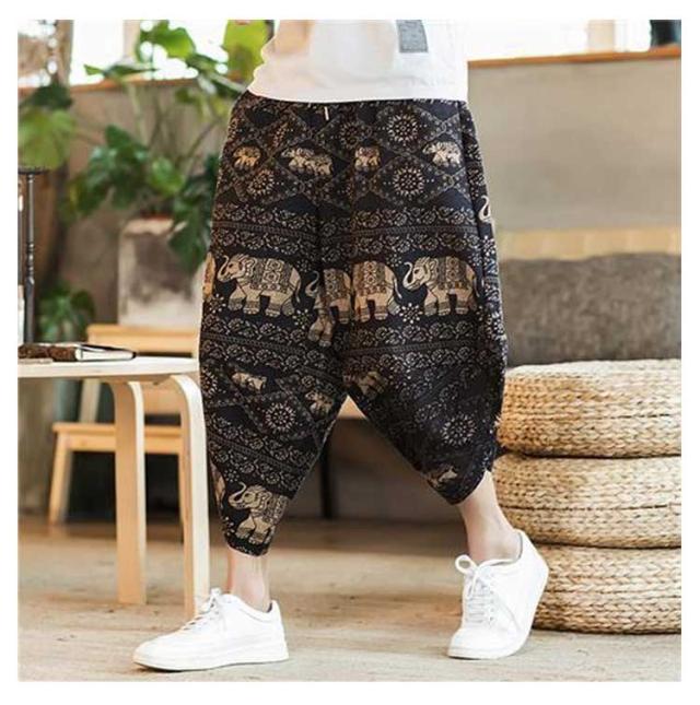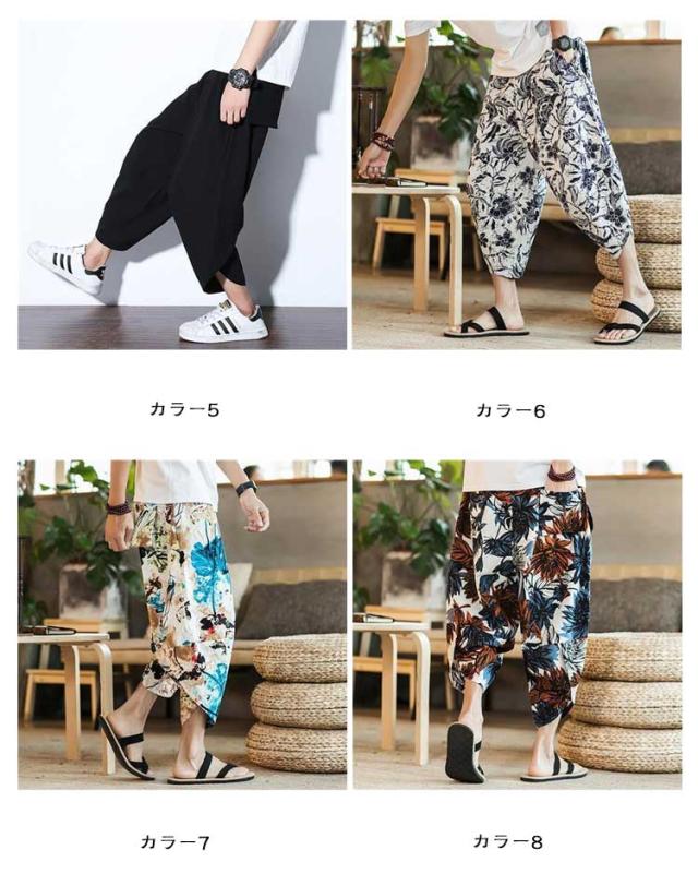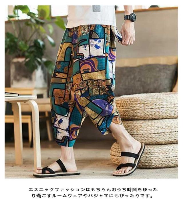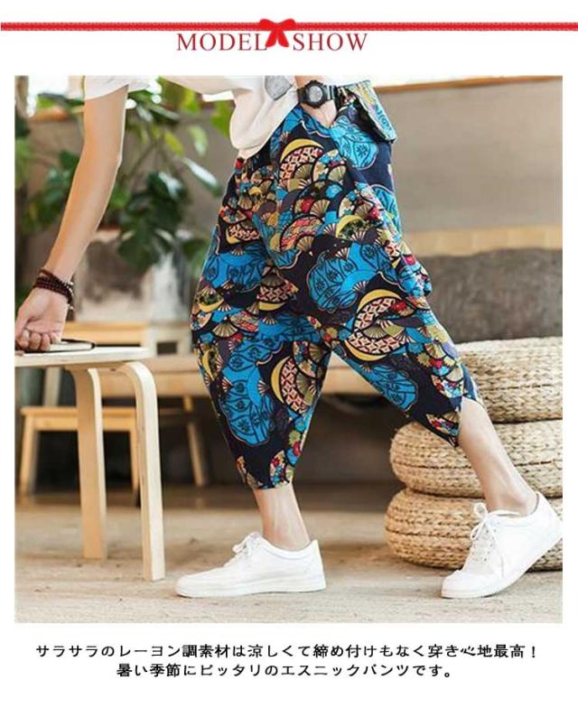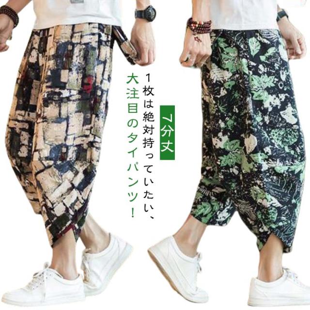 パンツ 7分丈 ゾウ 象柄 ジョガーパンツ 薄手 接触冷感 サルエルパンツ ぞう メンズ ゆったり 部屋着 ルームウェア 涼しい ワイド タイパンツ ウエストゴム クロップドパンツ 冷感パンツ タイパンツ 大きいサイズ 春 夏 ズボン