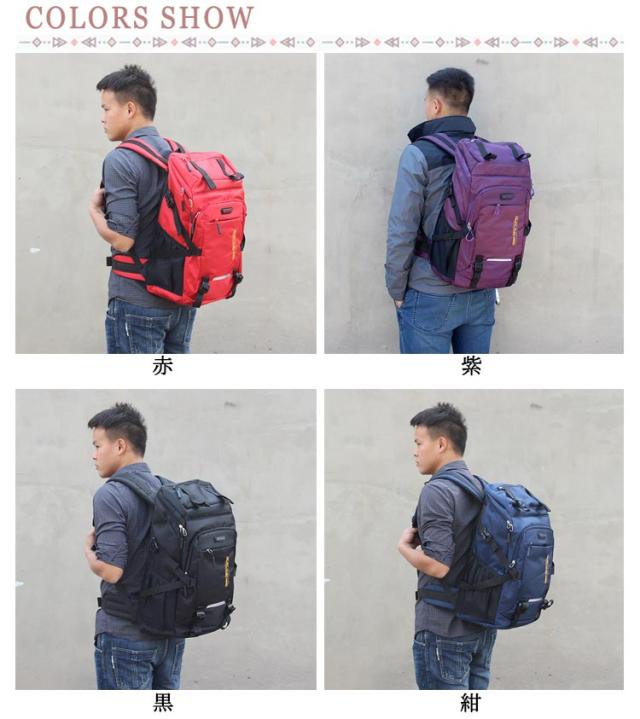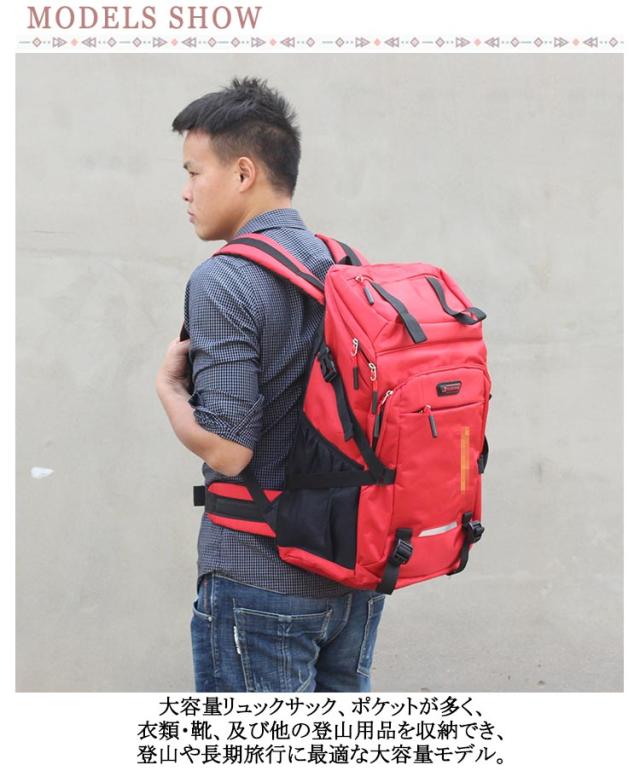 | 防水撥水加工!50L大容量アウトドアリュックサック。 大容量リュックサック、ポケットが多く、衣類・靴、及び他の登山用品を収納でき、登山や長期旅行に最適な大容量モデル。 メッシュには滑り止め効果のある素材を使用しており、背負う過程で肩に発生する空滑り現象を防止します。 背面の快適さを保証することを前提として、最大限の透湿性と摩擦耐性効果を保証します。 アウトドアや登山、旅行用だけでなく、通勤通学などにも使える大容量リュックです! 軽量なので女性でも安心です。 | |