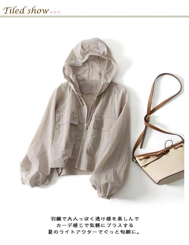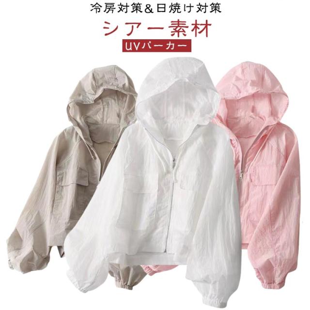 シアーブルゾン UVカット シアー パーカー ショート シアートップス レディース 吸水速乾 シアーブルゾン UVパーカー カーディガン シアー素材 透け感 長袖 春夏 涼しい 紫外線対策 羽織り フード付き 軽い 薄手 アウター マウンテンパーカー