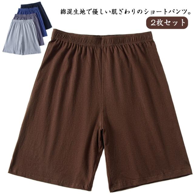 2枚セット コットン メンズ 綿 ルームウェア 短パン 半ズボン ルームパンツ パジャマ 大きいサイズ ショートパンツ 2枚セット 無地 薄手 ナイトウェア ゆったり ウエストゴム ストレッチ リラックス 春夏 カジュアル シンプル ボトムス