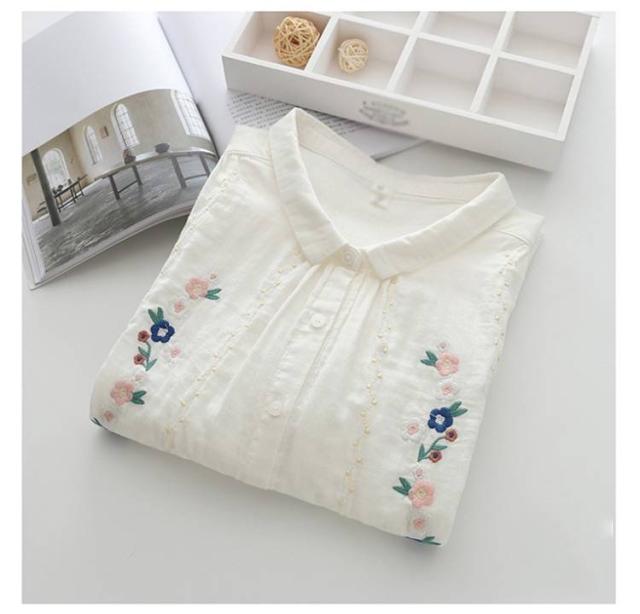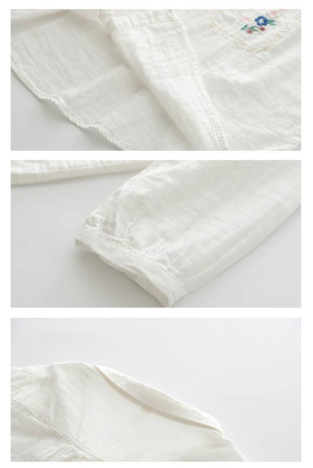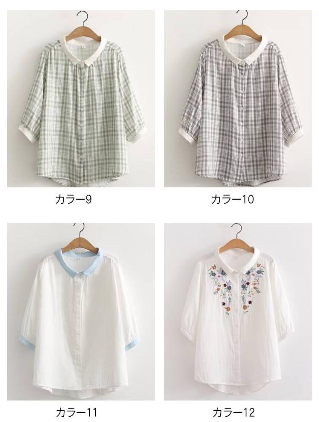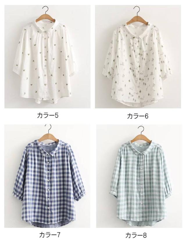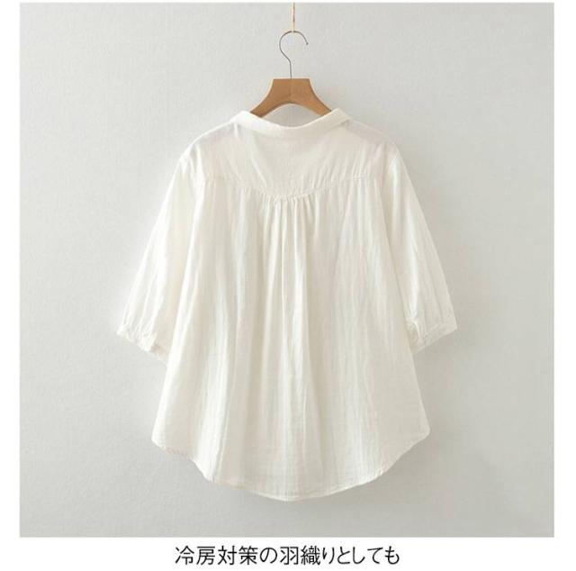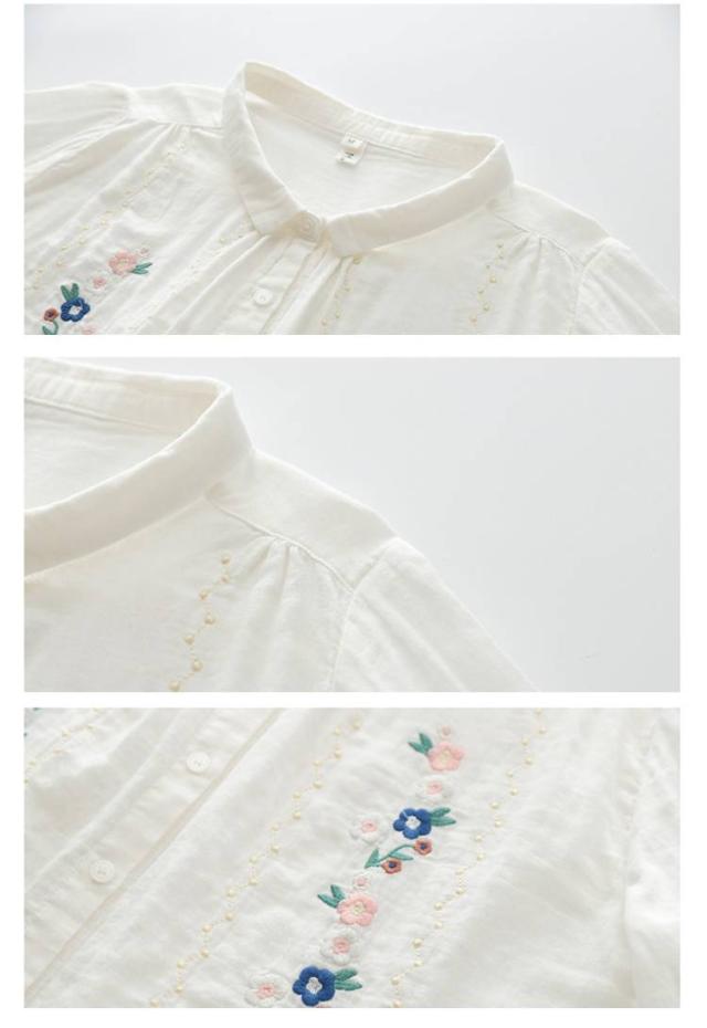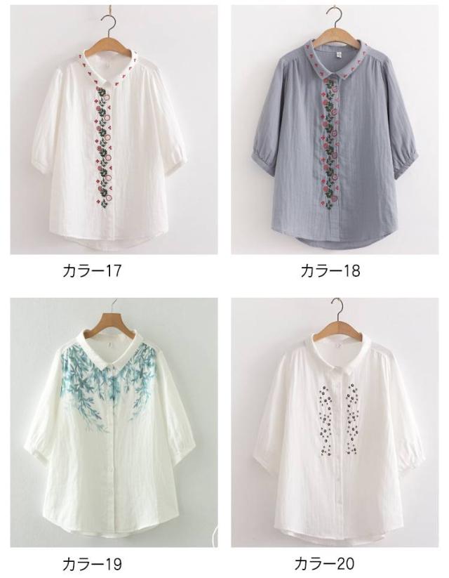 ガーゼ ゆったり 七分袖 森ガール 刺繍シャツ シャツ トップス ブラウス ブラウス ナチュラル 綿 花柄刺繍 綿シャツ 涼しい 夏 ふんわり 大人可愛い シンプル お洒落