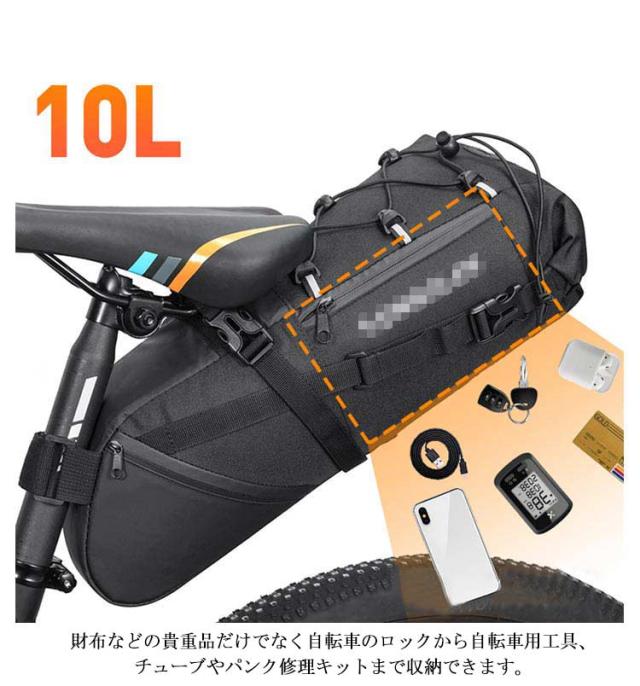 防水 10L サドルバッグ 自転車 サドルバッグ バイクパッキング用 自転車 大型 リアバッグ 防水仕様 荷物 簡単取り付け 大容量 バッグ 収納 反射加工 サドルバッグ シートバッグ シートポストバッグ 小物入れ サイクリング ロードバイク マウンテンバイク