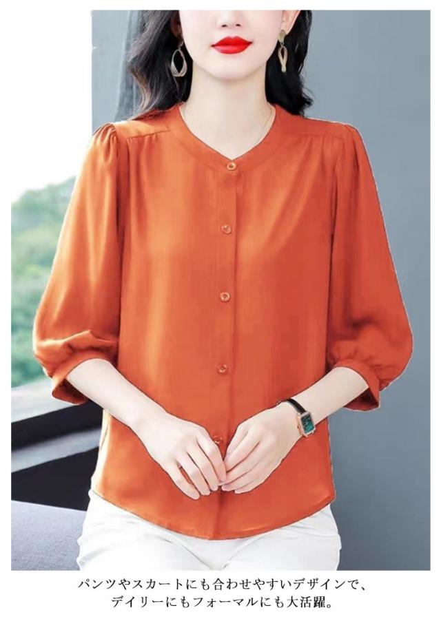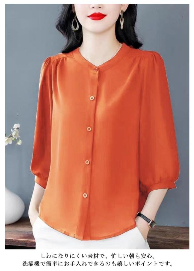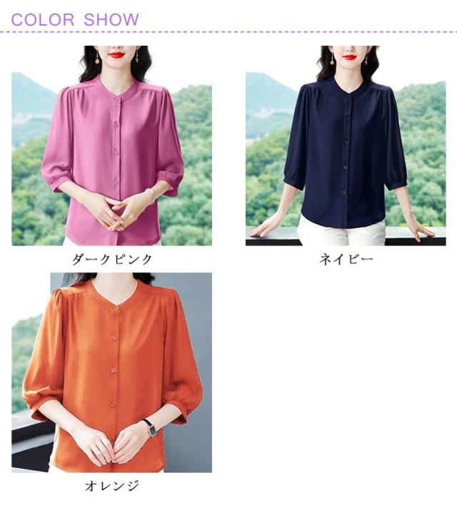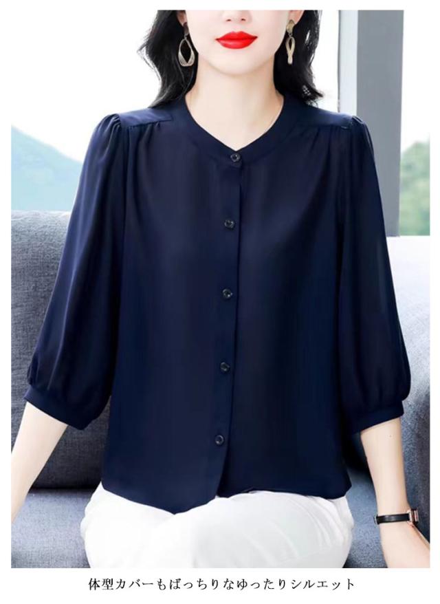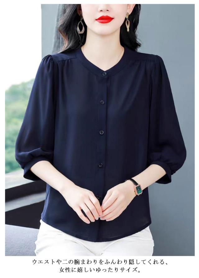 | 通勤もお出かけも上品に仕上がる一枚 — 七分袖シフォンブラウス 軽やかなシフォン素材と七分袖の組み合わせで、春夏にぴったりの上品ブラウス。 シンプルな無地デザインだから、オフィスや通勤コーデにも対応。ジャケットのインナーとしても◎な万能アイテム。 体型カバーもばっちりなゆったりシルエット ウエストや二の腕まわりをふんわり隠してくれる、女性に嬉しいゆったりサイズ。 パンツやスカートにも合わせやすいデザインで、デイリーにもフォーマルにも大活躍。 しわになりにくい素材で、忙しい朝も安心。洗濯機で簡単にお手入れできるのも嬉しいポイントです。 40代・50代の女性にも人気の落ち着きカラー展開 | |
