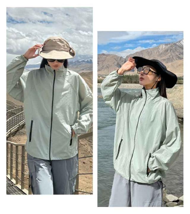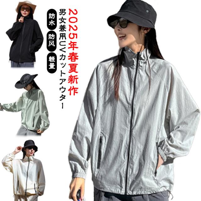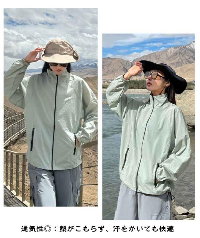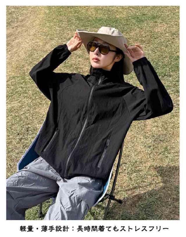 UVカット アウトドアジャケット ラッシュガード コート 立ち襟 フッドなし UVカット サマージャケット 軽量 防水 防? アウター レディース 登山 トレッキング キャンプ 自転車 通勤 通学