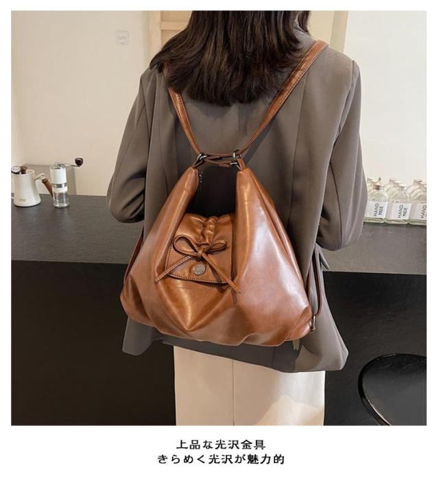 多機能 リュックサック 通勤バッグ 軽量 軽い ワックスレザー リボン リュック 大容量 ファスナー レトロ 肩掛けバッグ コーヒー 茶色 トート バッグ 黒 マザーズバッグ トートバッグ 2way 通勤 おしゃれ 収納 2way 皮革 革バッグ きれいめ 上品 プレゼント