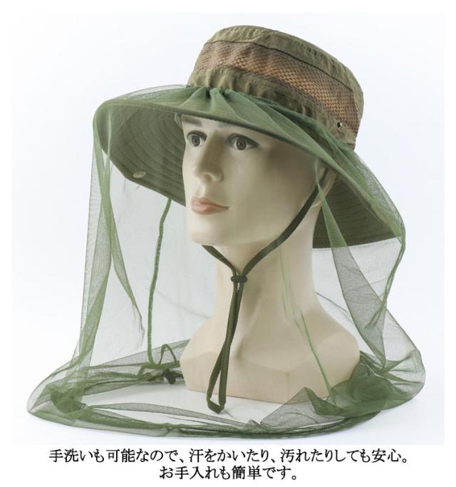 | ガーデニングや畑仕事・庭の草むしり、登山やキャンプ、アウトドア・海外旅行など サッとかぶるだけで、顔まわりにたかる蚊やブヨ、ハエ・蜂などもブロック。 ひもで調節する事ができ、襟口もしぼれるので、襟もとからの虫の侵入も防いでくれます。 前面は、風を通すメッシュタイプなので、蒸れにくく、視界も良いので、作業もしやすく便利。 UVカット率99%、幅が約7cmのつばと後面の日よけカバーで顔まわりと首の後ろを紫外線からしっかりガード。 手洗いも可能なので、汗をかいたり、汚れたりしても安心。お手入れも簡単です。 男性用・女性用(メンズ・レディース)兼用タイプ。虫の気になるいろいろなシーンで大活躍してくれる防虫帽子(ハエよけ帽子)です。 | |