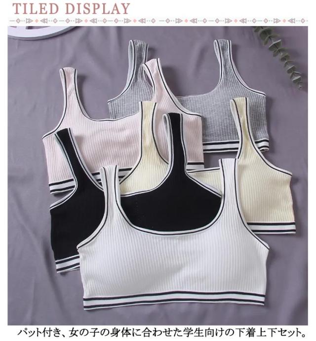 | お得なブラジャー&パンツ上下セット*2 パット付き、女の子の身体に合わせた学生向けの下着上下セット 柔らかく通気性抜群の素材を採用して汗をかいても吸収して乾きやすい、蒸れずにさらっとした快適な着心地が続きます。 安心のベスト仕様は肩が動かしやすいでずれ落ちない。 取り外し可能のパッド付き、いつでも清潔にお使いいただけます。 シンプルなデザインでスッキリしたシルエットを演出してトップスに響かないから嬉しい。 | |