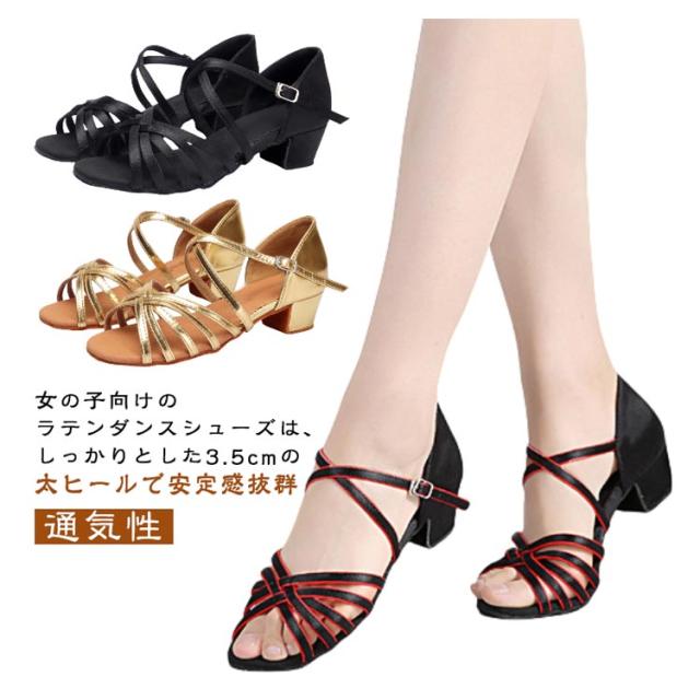 子供用シューズ 女の子 子供用 キッズ ラテン 靴 子供 ジュニア ダンスシューズ ラテンシューズ 3.5cmヒール 練習用 ガールズ 社交ダンスシューズ 滑り止め 軽量 通気性 フィットネス 体操シューズ 歩きやすい