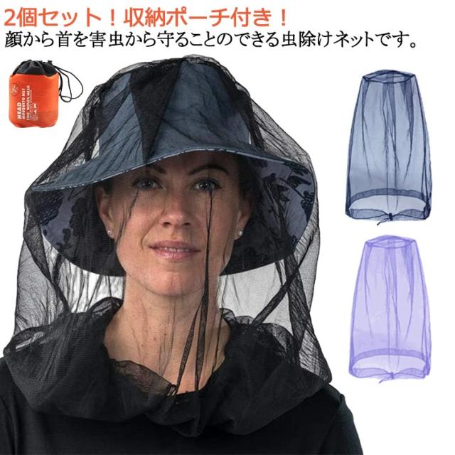 虫よけハット 農作業着 カバー 蚊 顔 帽子用 帽子 モスキートネット キャンプ 虫除け アウトドア 登山 蚊対策 ガーデニング 園芸 メッシュ ヘッドネット 虫よけネット フェイスガード 収納ポーチ付き2個セット 蚊帳 釣り 蚊よけ 被るだけ