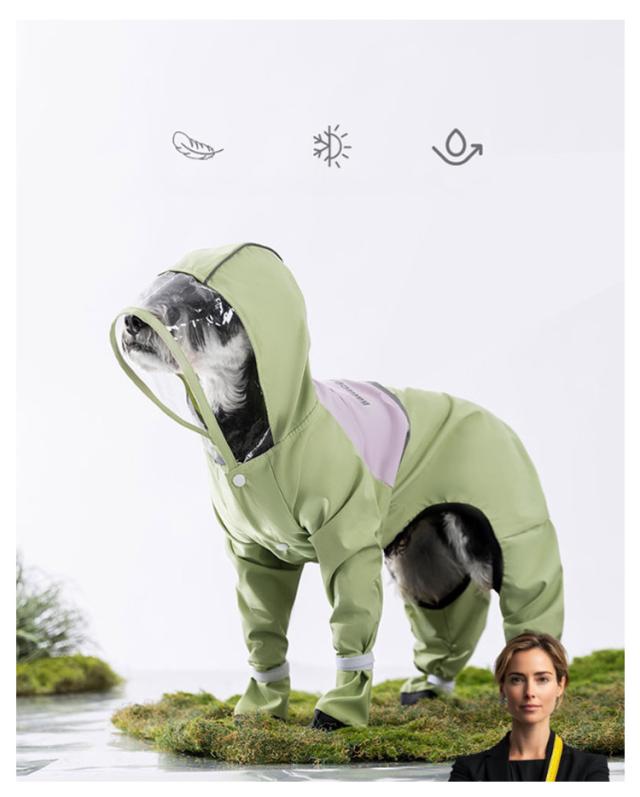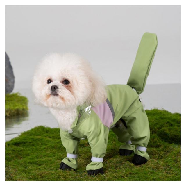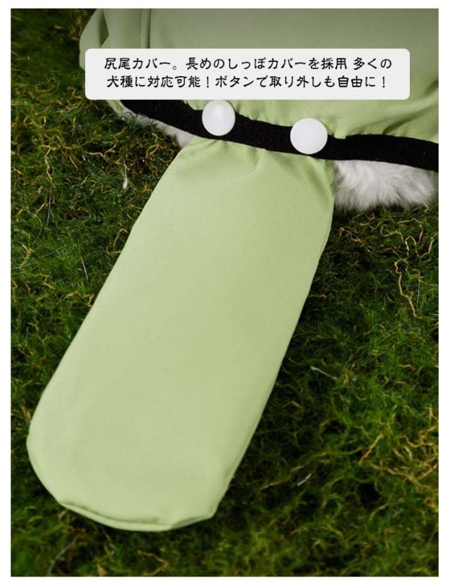 | 雨の日も足を濡らさず、楽しくお散歩!帽子・靴・尻尾カバー付き!レインコートフルカバー。 頭カバー・帽子!横・縦ともに大きさをアップグレードしより防雨効果を高めると同時に透明デザインを採用することで わんちゃんの視線を妨げない。 尻尾カバー。長めのしっぽカバーを採用 多くの犬種に対応可能!ボタンで取り外しも自由に! リードフック付き! 反射ベルト付き!夜間でも安全にお散歩! | |