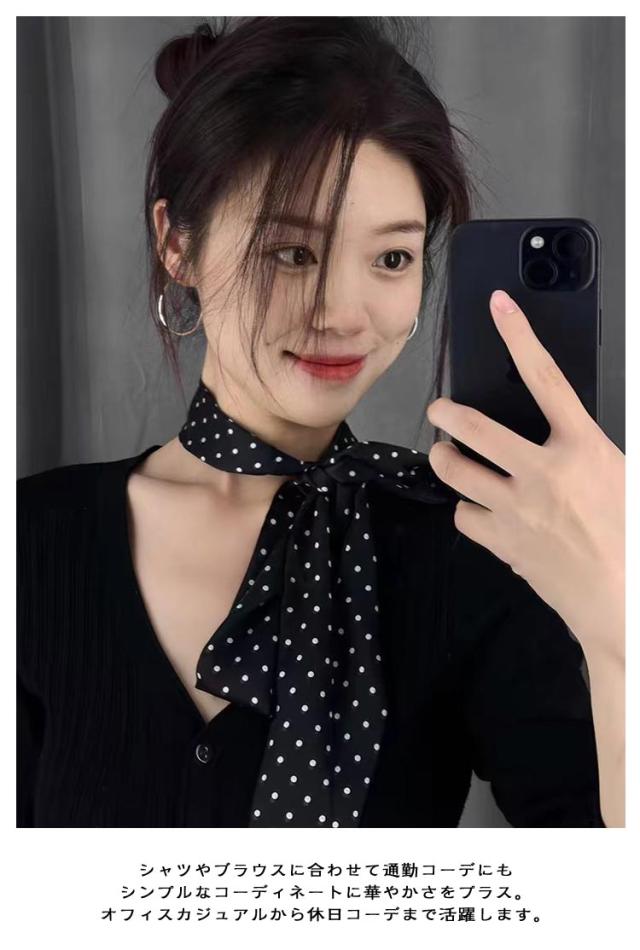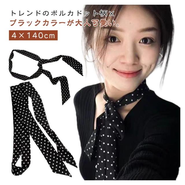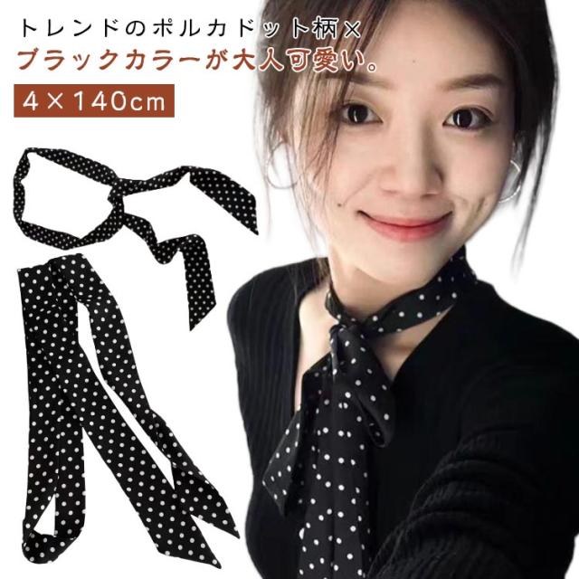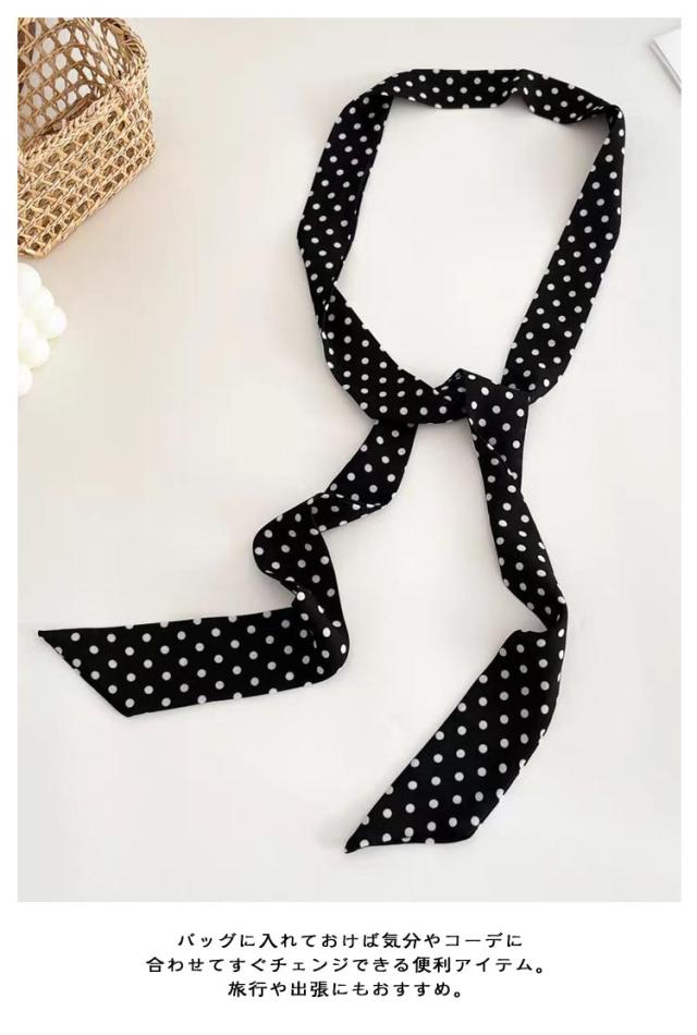 2枚セット 春夏秋冬 レディース ドット柄スカーフ おしゃれ ヘアバンドスカーフ ドット柄スカーフ シルク調スカーフ 首巻きスカーフ 細スカーフ 大人 可愛い 薄手 4×140cm フォーマル シャツコーデ シンプル 通勤 ヘアアクセサリー 上品