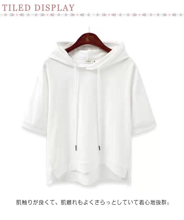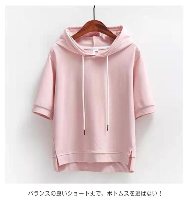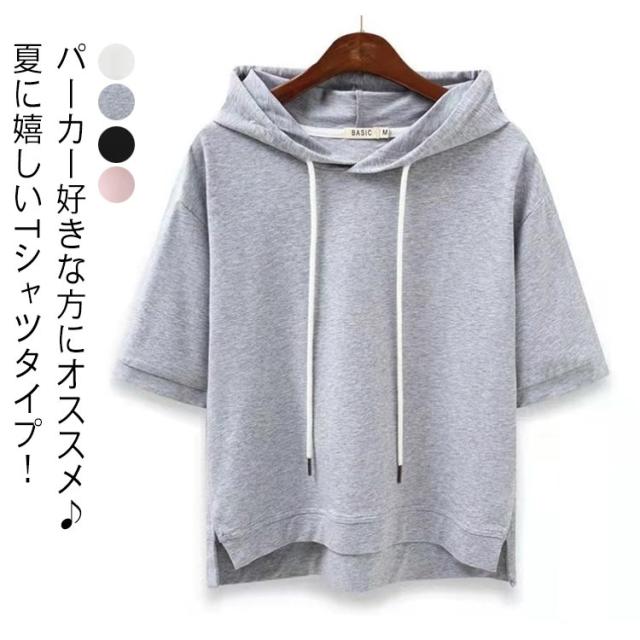 カジュアル フード付き 通学 プルオーバー トップス おしゃれ パーカー 半袖 送料無料 女性 フード付きtシャツ 夏服 レディース お洒落 シンプル 大きいサイズ 着?せ ミディアム丈 学生 通勤 無地 夏服 可愛い ギフト