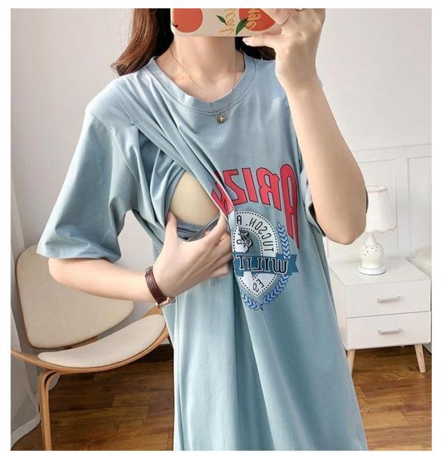 ルームウェア ロング 寝間着 授乳口付き Tシャツ パジャマ 前開き 授乳服 マタニティ 半袖 長袖 ワンピース ママ 妊婦 部屋着 マタニティ ロング丈 入院準備 大きいサイズ カジュアル かわいい