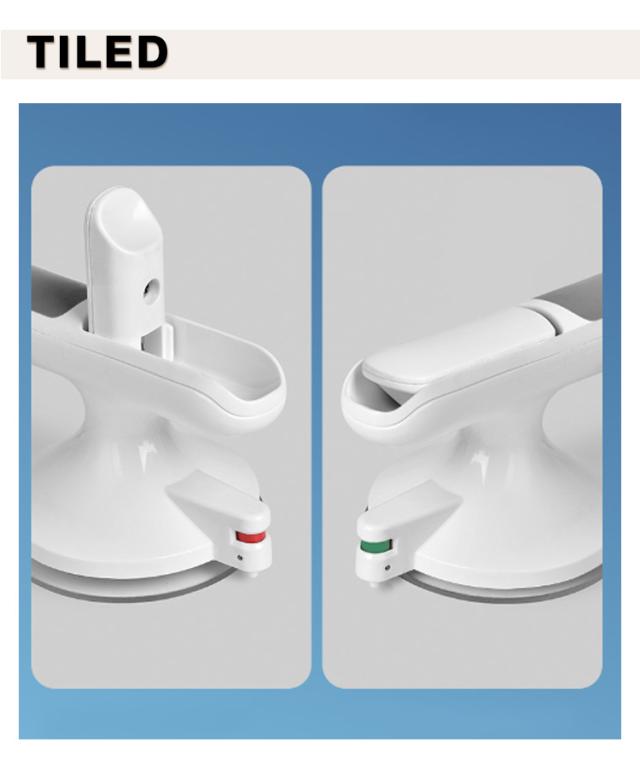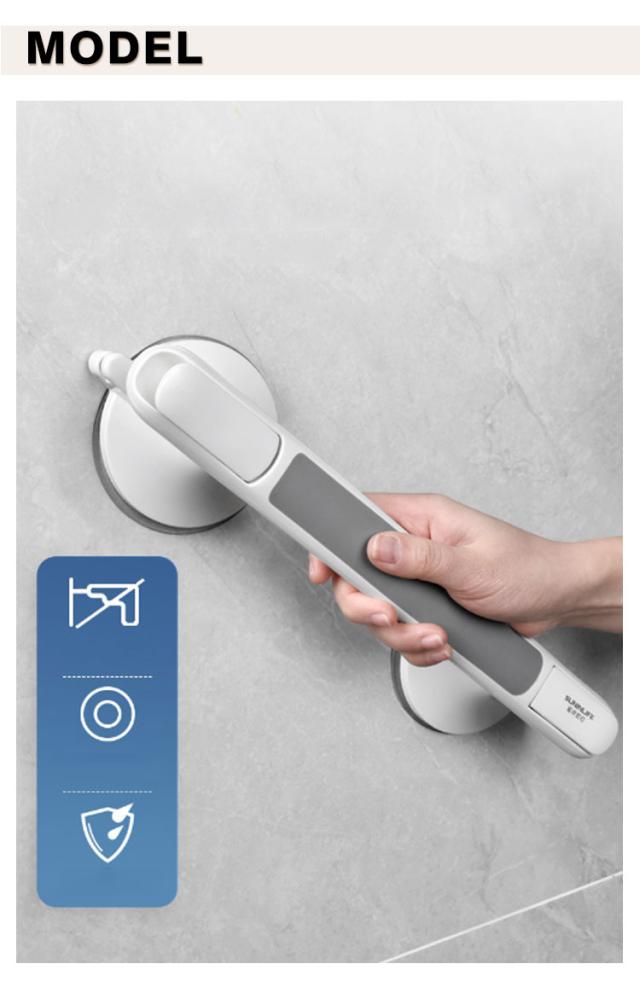 | 壁に押し付けながらレバーを引くだけで真空状態になった吸盤が強力に張り付く補助ハンドル。 トイレや窓バスルームなどあらゆる場所に設置可能。高齢者の補助ハンドルからお子様まで。 立ち座りが多いお風呂場でも安全につかまる事ができます。 シンプルでモダンなデザインでどんな場所でも違和感なくマッチします。 | |
