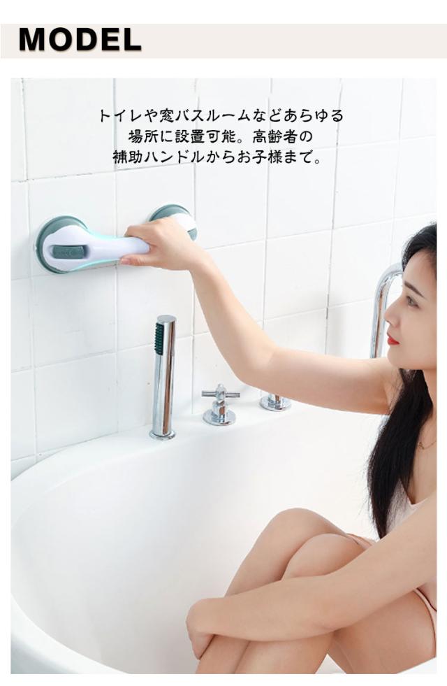 | 壁に押し付けながらレバーを引くだけで真空状態になった吸盤が強力に張り付く補助ハンドル。 トイレや窓バスルームなどあらゆる場所に設置可能。高齢者の補助ハンドルからお子様まで。 立ち座りが多いお風呂場でも安全につかまる事ができます。 シンプルでモダンなデザインでどんな場所でも違和感なくマッチします。 | |