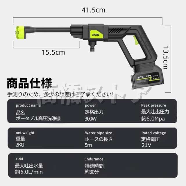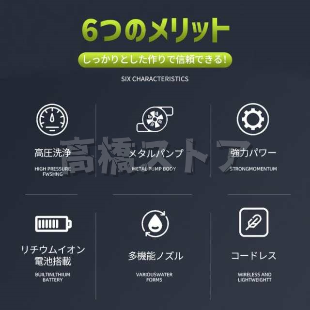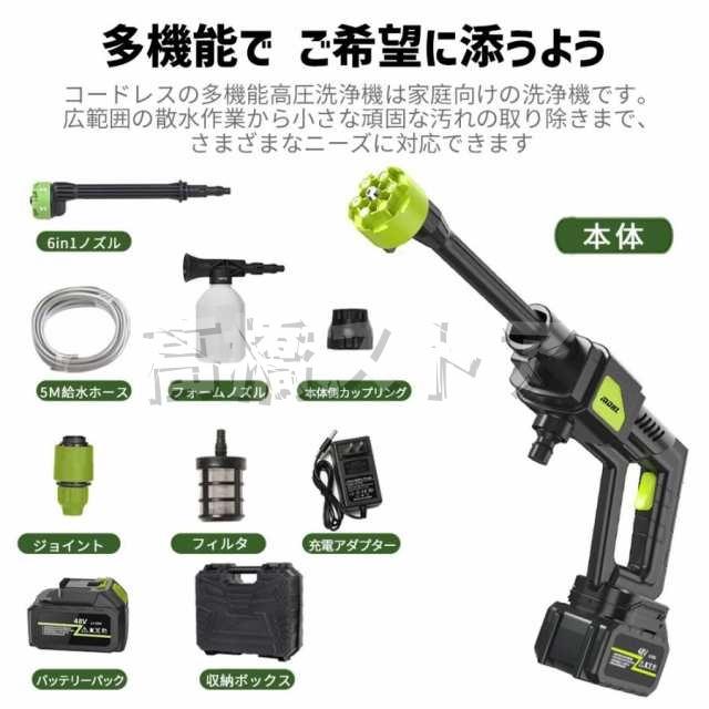高圧洗浄機 ハンディウォッシャー コードレス 6in1 充電式 マキタバッテリー対応 収納ケース付 大容量バッテリー ポータブル 自吸式 強力噴射 洗車タオル 軽量 家庭用 電動工具 大掃除 母の日 ギフト【正規品】