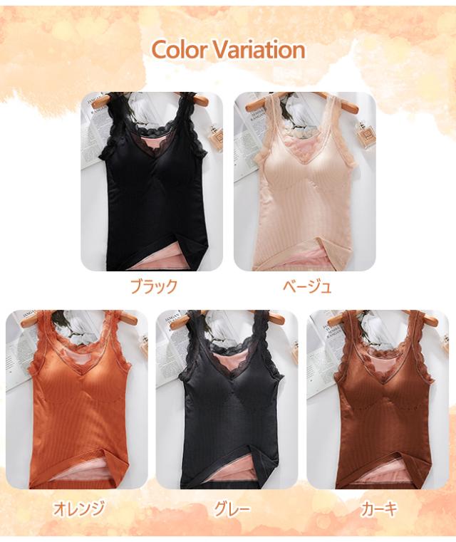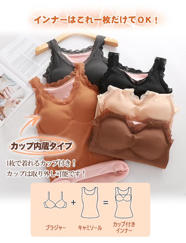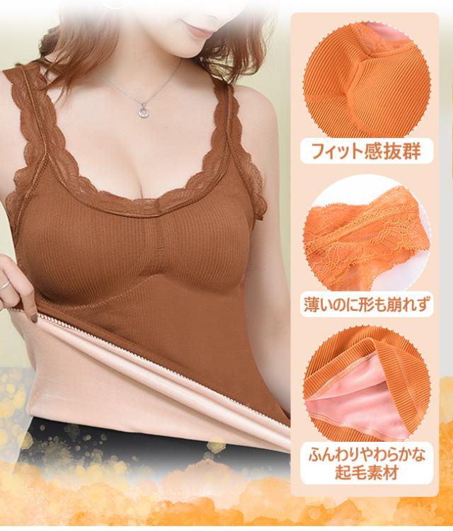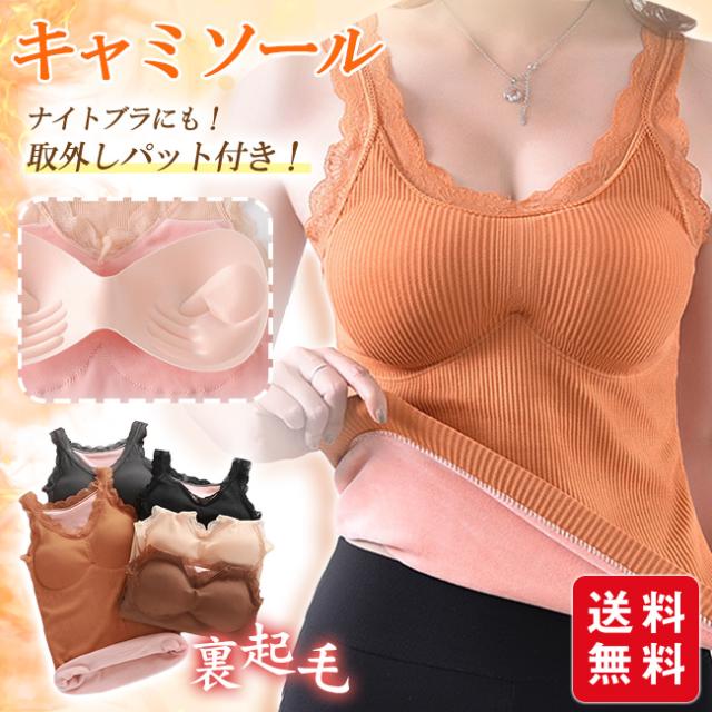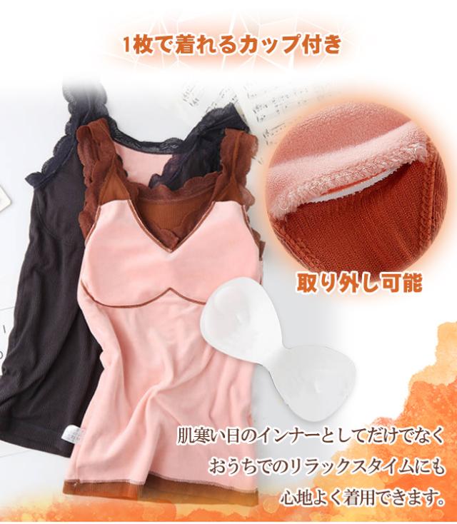 【新作】裏起毛キャミソール 暖かい あったか インナー レース タンクトップ Vネック カップ付 防寒 秋 冬 重ね着 ナイトブラ 下着 肌着 レディース あったかインナー ノンワイヤー ポカポカ ブラジャー ナイトブラagesugi_sfa