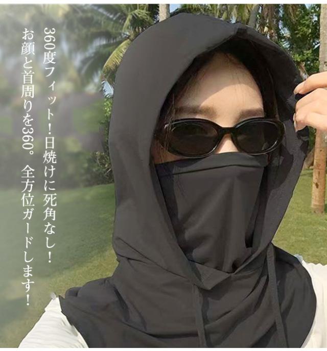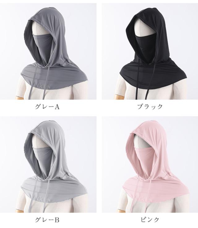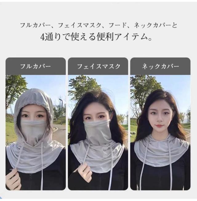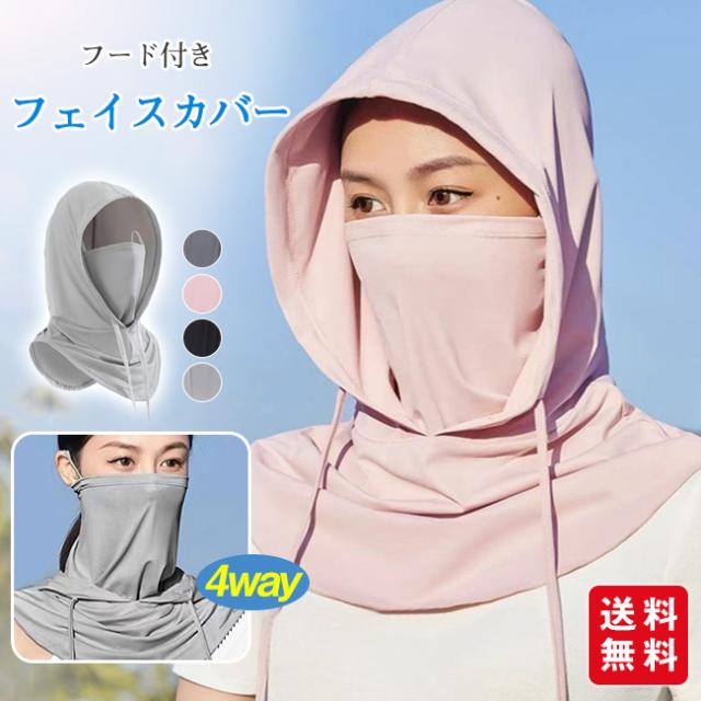 フード付きフェイスカバー 日焼け防止 ネックカバー 接触冷感 4way 軽量 フェイスガード フェイスマスク 小顔効果 熱中症対策 普段使い ウォーキング スポーツ観戦
