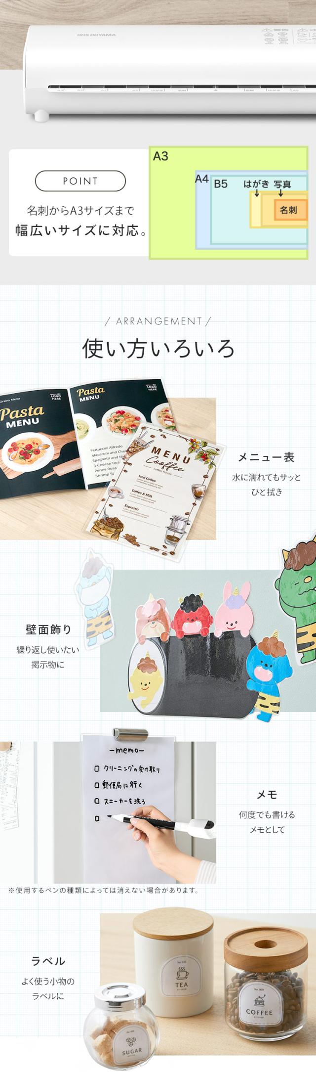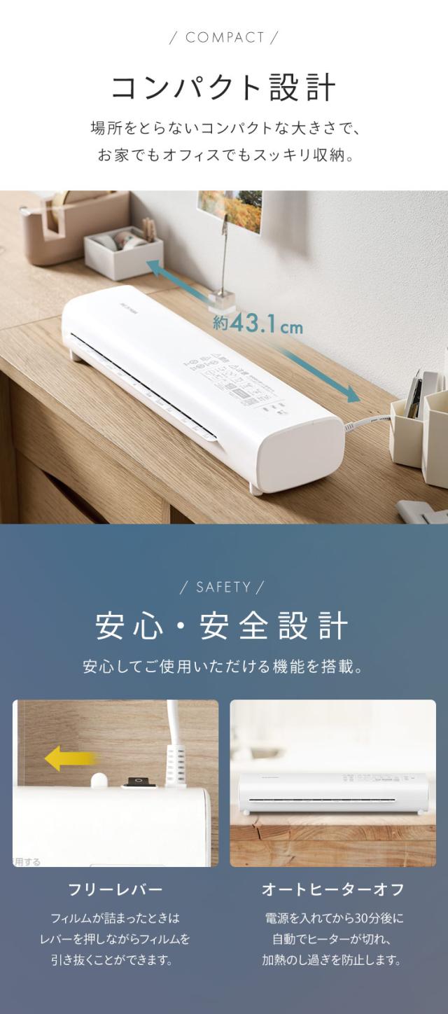 (検索用:ラミネーター・本体・a3・ラミネートフィルム・75ミクロン・100ミクロン・対応・ラミネート・高速化・時短・保護・丈夫・掲示物・写真・絵・保育園・幼稚園・学校・店舗・オフィス・コンパクト・A3対応・ラミネート機・家庭用・ホワイト・4967576705554・アイリスオーヤマ)