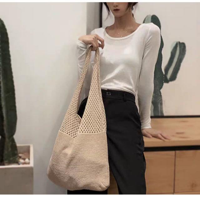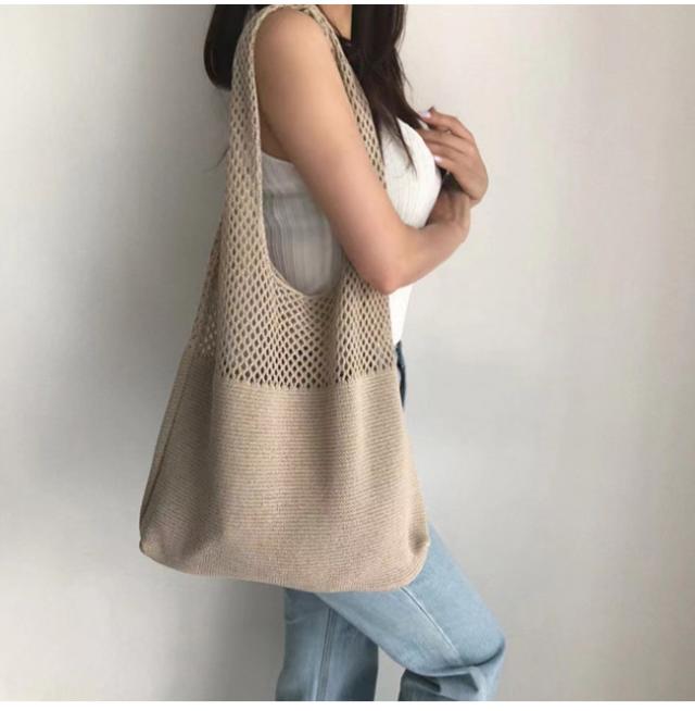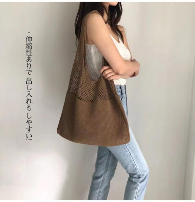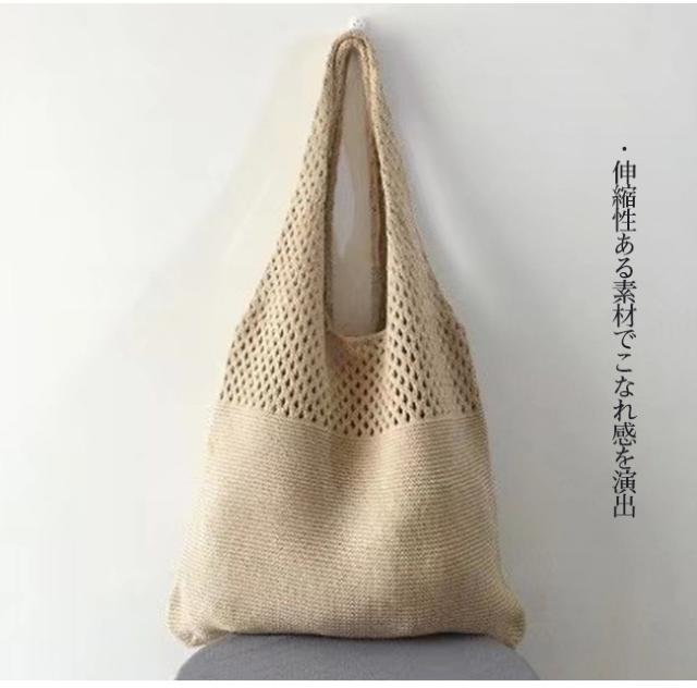 ショルダーバッグ バッグ かぎ編み レディース ニット トートバッグ かぎ編みバッグ ニットバッグ bag 軽量 透かし編み 肩掛け 大人 お出かけ