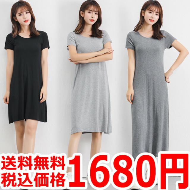 インナー ワンピース レディース 半袖 カットソー Tシャツ ロンT Tシャツワンピ インナーワンピース 肌着 春夏秋冬 白 灰 黒 ホワイト グレー ブラック ネイビー 天然素材 モダール ストレッ
