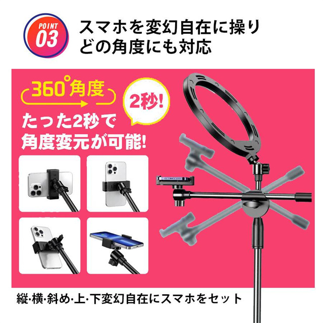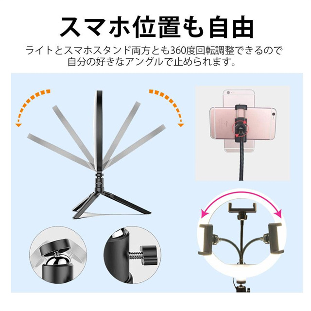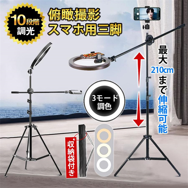 俯瞰撮影 スマホスタンド 三脚 リングライト 3色調光 料理動画 撮影 LED YouTube tiktok 動画 Web ミーティング リモート 送料無料