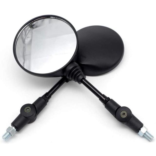 XSAJU バイクミラー 汎用 丸型 折りたたみ ネジ径 10mm 左右セット 可倒式 丸ミラー ブラック