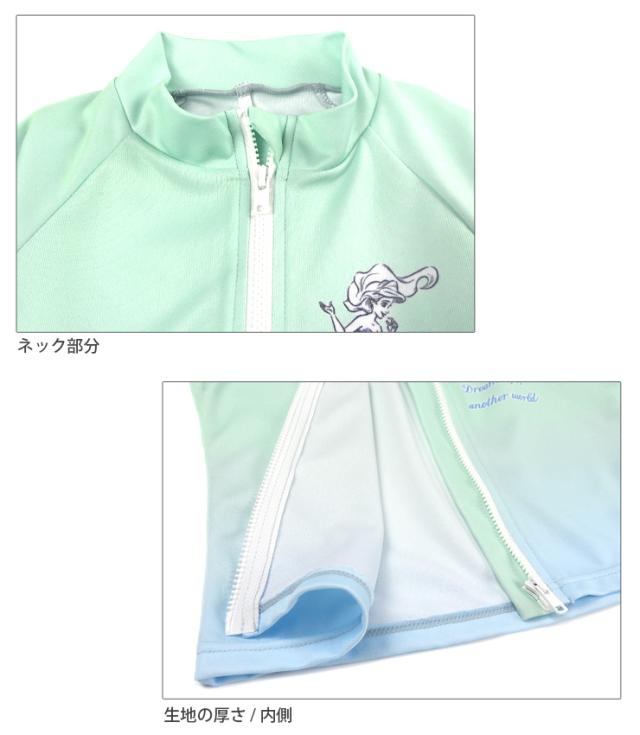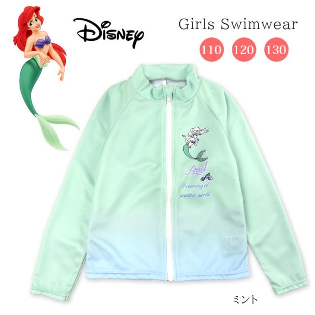 【メール便送料無料】アリエル ディズニープリンセス 長袖 ラッシュガード 水着 キッズ 女の子 110 120 130 Disney 3234007 ファスナー ジッパー ジップアップ 前開き スイムウェア 羽織り グラデーション リトル・マーメイド ミント 緑 青 グリーン ブルー sw3652