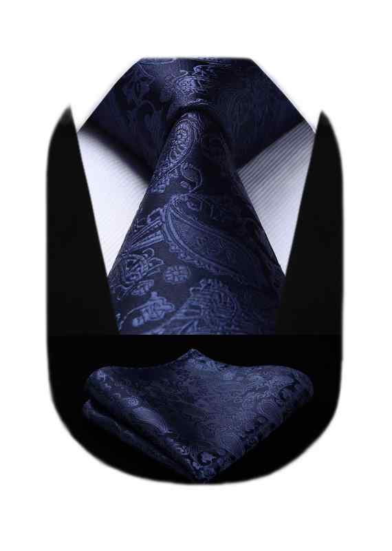 [HISDERN] HP-03 ペイズリー ネクタイ チーフ セット 幅8.5cm おしゃれ 花柄 ブランド ネクタイ パーティー 結婚式 ビジネス 二次会 45柄 (01ネイビー(ペイズリー柄))