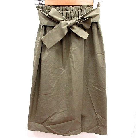 【中古】シップス SHIPS スカート フレア ミモレ ロング ウエストマーク 36 カーキ /RT レディース