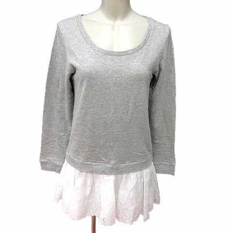 【中古】ニーナミュウ nina mew ワンピース ミニ スウェット フェイクレイヤード 刺しゅう F グレー 白 レディース