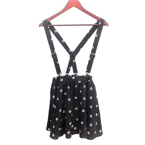 【中古】コルザ COLZA キュロットパンツ ショート サスペンダー 花柄 M 黒 ブラック /AU ●RY レディース