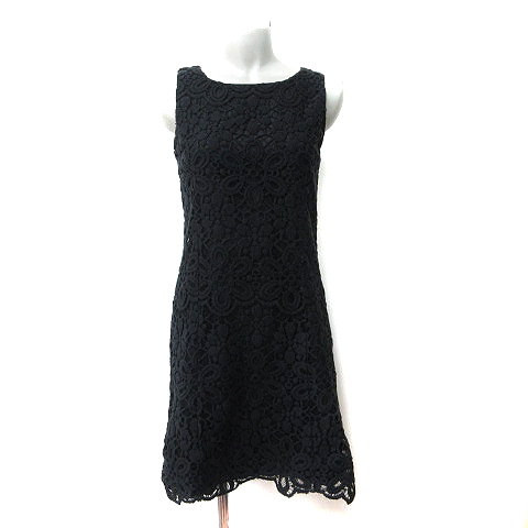 【中古】ルスーク Le souk ワンピース ひざ丈 ノースリーブ 総レース 38 M 黒 ブラック /YI レディース