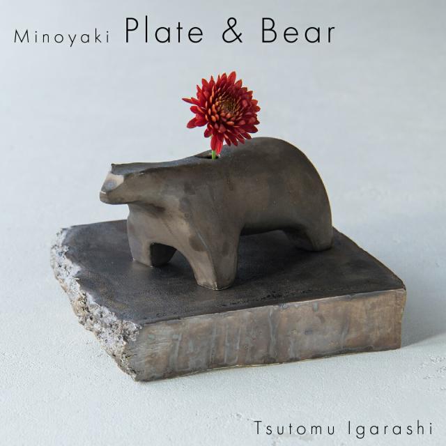 五十嵐務 台皿 中 ブロンズ釉 &一輪挿し くま ブロンズ釉 セット 美濃焼 銅風 陶器 作陶家 陶芸作品 一点もの 手作り 受注生産 ハンドメイド インテリア おしゃれ ギフト プレゼント ラッピング対応可