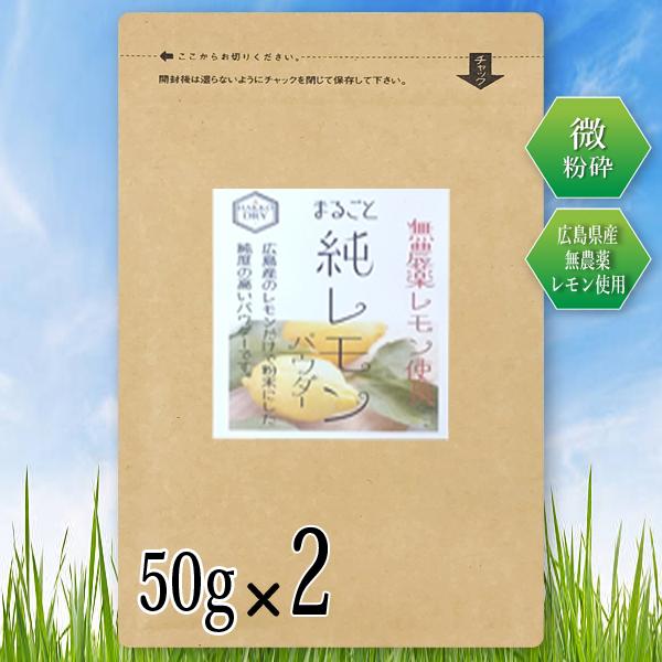 無農薬 レモンパウダー 50g×2 レモン丸ごと 粉末 国産 広島県産 農薬不使用レモン ロックレモン