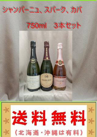 送料無料 シャンパーニュ、クレマン、カバ 3本セット 750ml (北海道、沖縄、は有料)