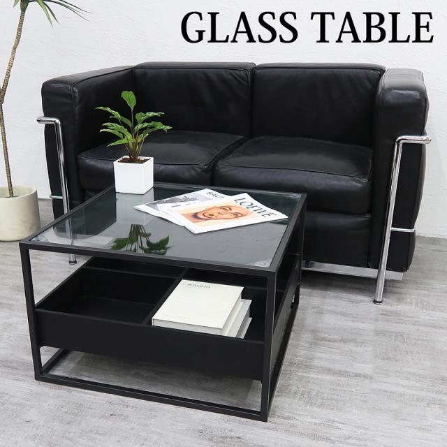 センターテーブル ガラステーブル スクエア サイドテーブル ローテーブル 高級 収納付き 棚 机 ガラス モダン 北欧 インダストリアル おしゃれ ソファ パソコン 店舗 直径60cm CT-06S