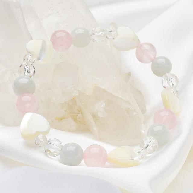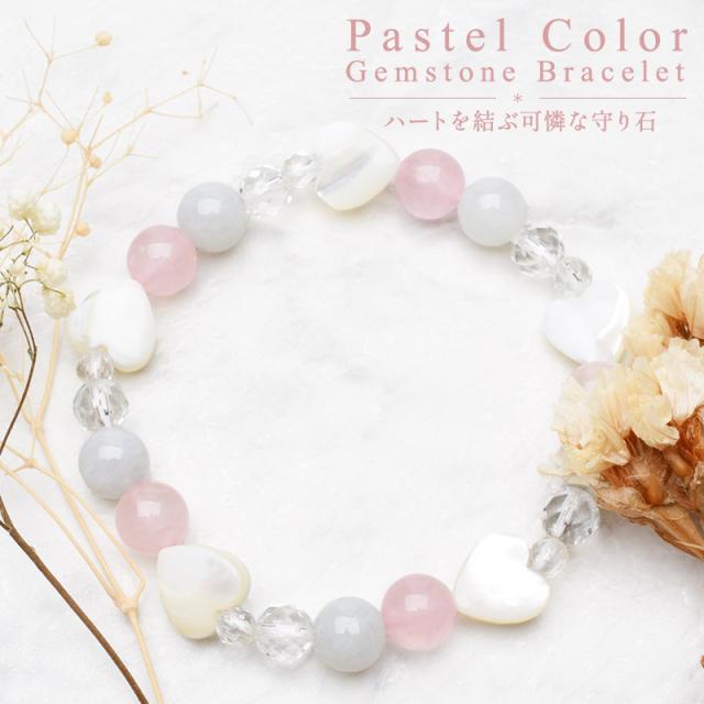 パステルカラー ハートを結ぶ可憐な守り石 ブレスレット 幸運 癒やし 浄化 運気向上 開運 お守り プレゼント _A1299