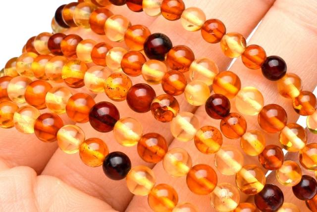 希少◇ミャンマー産 アンバー(琥珀) 4mm ブレスレット 1個売り 健康運・金運・仕事運_B1434-4