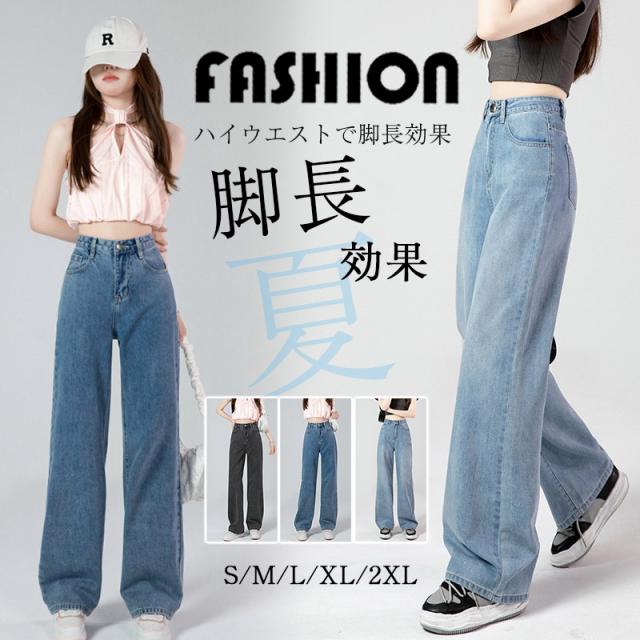 デニムパンツ ワイドパンツ 脚長効果 デニム ズボン レディース ジーンズ 美尻 体型カバー 着痩せ 美脚