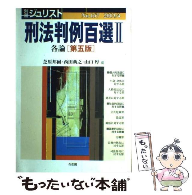 商品名:【中古】 刑法判例百選 2(各論) 第5版 (別冊ジュリスト no 167) / 芝原邦爾、西田典之 / 有斐閣 [ムック]【メール便送料無料】