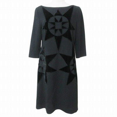 【中古】シビラ SYBILLA ワンピース ひざ丈 7分袖 ベロアパッチ 40 M相当 黒 ブラック X レディース