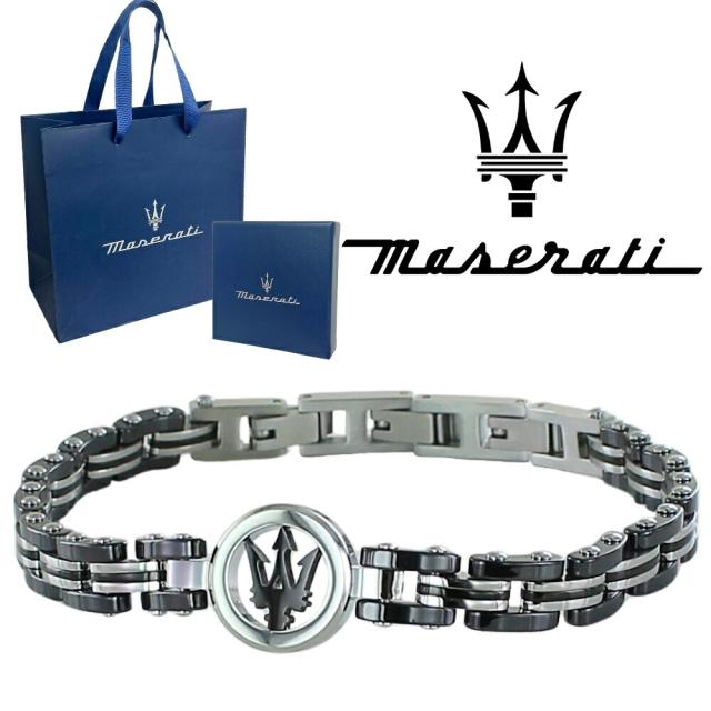 正規品 純正ショッパー付き マセラティ ブレスレット メンズ レディース ユニセックス ロゴ チェーンブレスレット ステンレス ブラック シルバー 誕生日 記念日 プレゼント ギフト