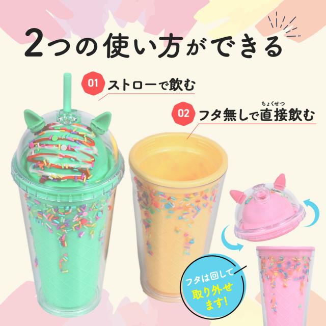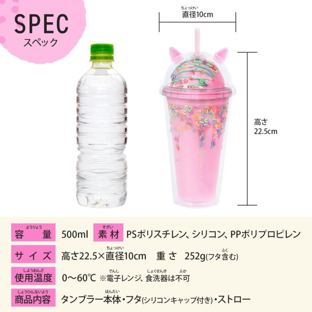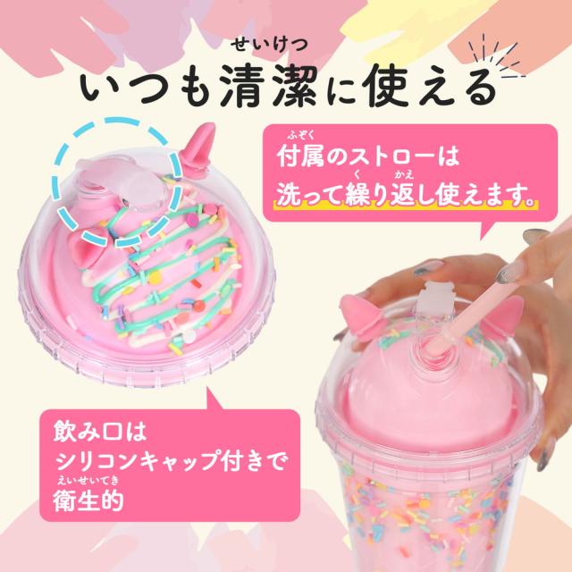 たっぷり500mlの大容量と、繰り返し使えるストロー付きで、ジュースやお茶などお好きな飲み物を入れて楽しめます♪