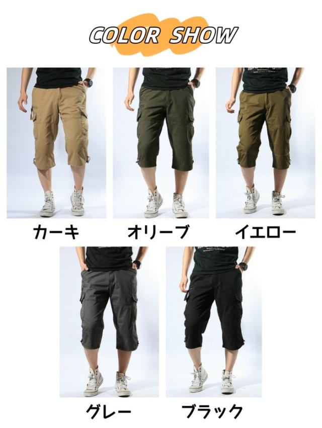 カーゴパンツ メンズ 七分丈パンツ クロップドパンツ 七分丈 ワイド スリム ハーフパンツ 速乾 大きいサイズ ゆったり アウトドア 耐摩耗性 夏